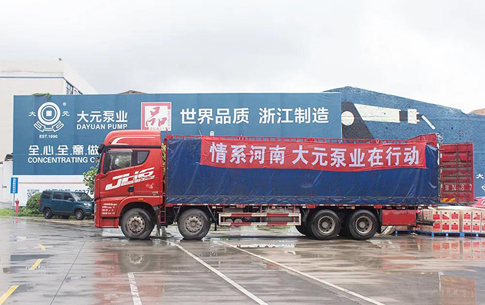 最近,河南持续遭遇强降雨,多地出现严重洪涝灾害,千里之外的灾情也牵动着温岭人的心,作为一家30年专注生产水泵的上市公司,大元泵业第一时间关注到了此事。