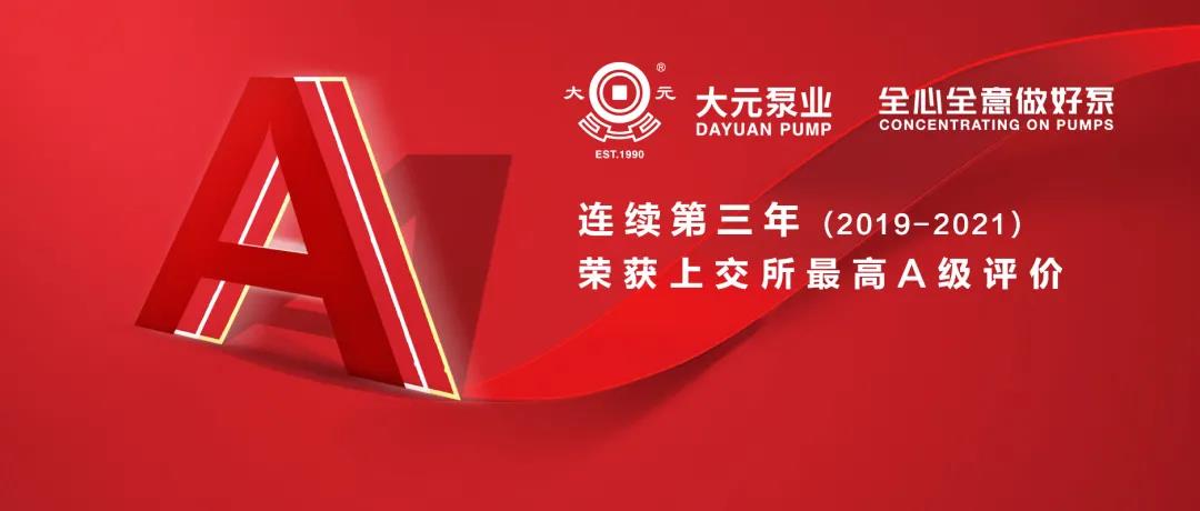 大元泵业在上海证券交易所2020-2021年度上市公司信息披露工作评价中,连续第三年荣获最高评级“A”级。根据中国证券报的统计数据,沪市上市公司中仅有168家公司连续三年被评为A类。