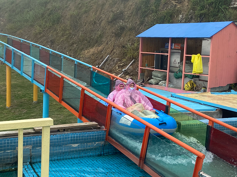 乘坐飞天魔毯而上,大元小伙伴们体验了七彩玻璃滑道,穿上雨衣雨裤,把自己全副武装起来,坐在皮艇里,荡漾在清澈的山泉水中,跟随着时而平缓时而湍急的河流,感受凉爽和激情的碰撞。