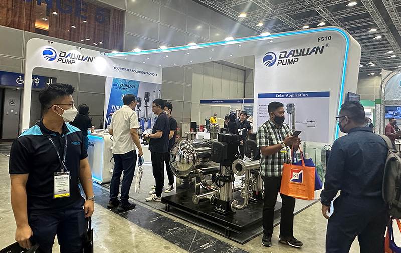 在本次马来西亚水展中,大元展出的产品除了近年来火爆的DV/DVS系列立式多级泵,和DWFY无负压变频供水系统、DH/DHS/DHL系列卧式恒压变频泵、恒压节能高速井泵、A3自动喷射泵等以外,还带来了新品光伏直流井泵和永磁智能变频增压泵。为期三天的展会吸引了国际客户的广泛关注,来自马来西亚,泰国,沙特,俄罗斯等各个国家的客户络绎不绝,表示对大元泵业的产品很有兴趣,并积极表达了发展长期合作的意愿。这也是解封后大元第一次出国参展,体现了公司积极响应政府开拓海外市场的号召,让世界看到中国制造和智造的力量。通过本次展会,大元泵业进一步展现了企业的创新力,同时也提升了DAYUAN自主品牌在海外市场的形象和知名度。