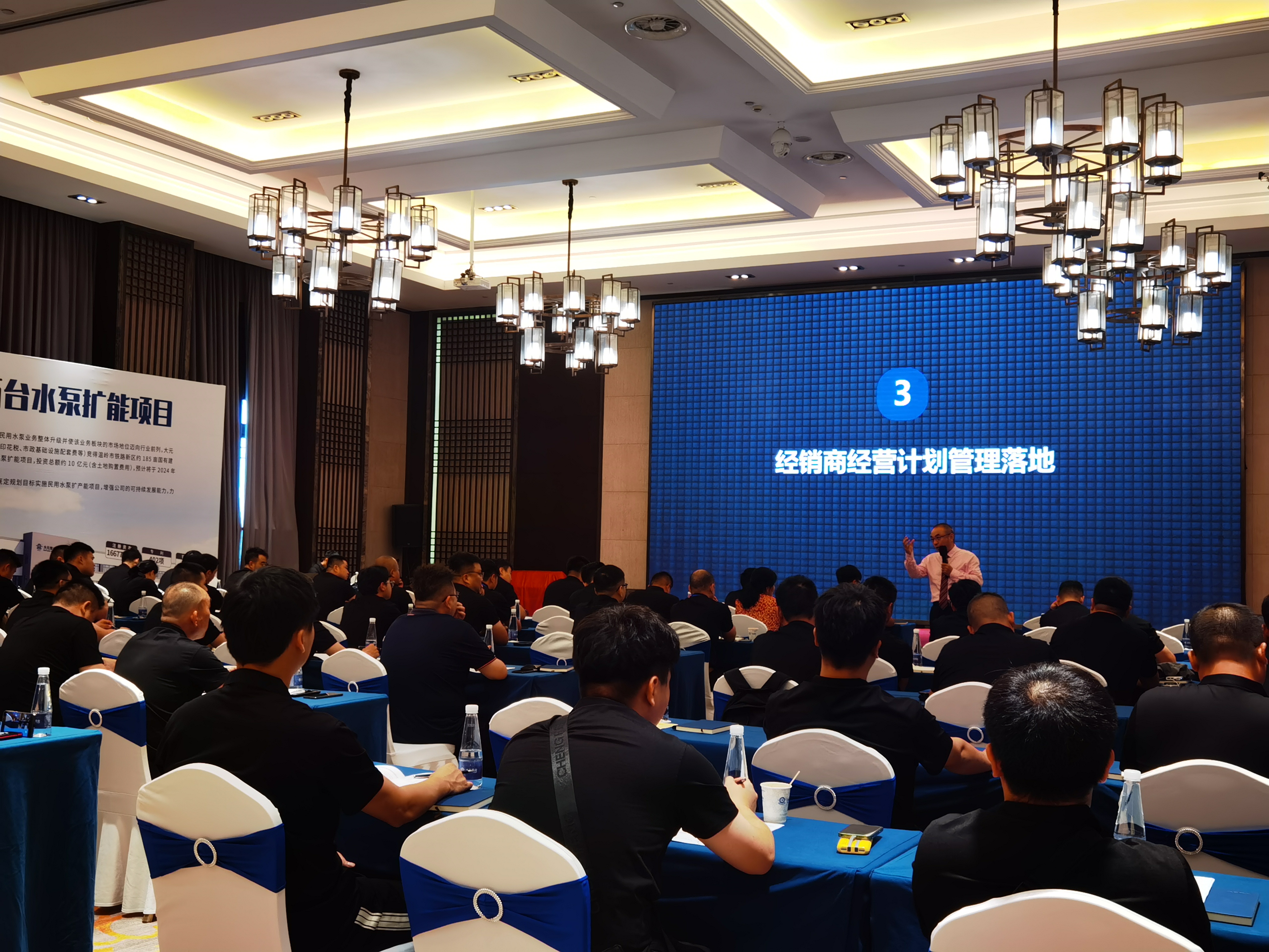 培训伊始,pg电子官方网站模拟器泵业股份有限公司总经理王侶钧王总发表致辞。王总精彩的发言为市场注入强心剂,让经销商们对大元泵业的未来发展战略及市场布局有了更深入的了解。